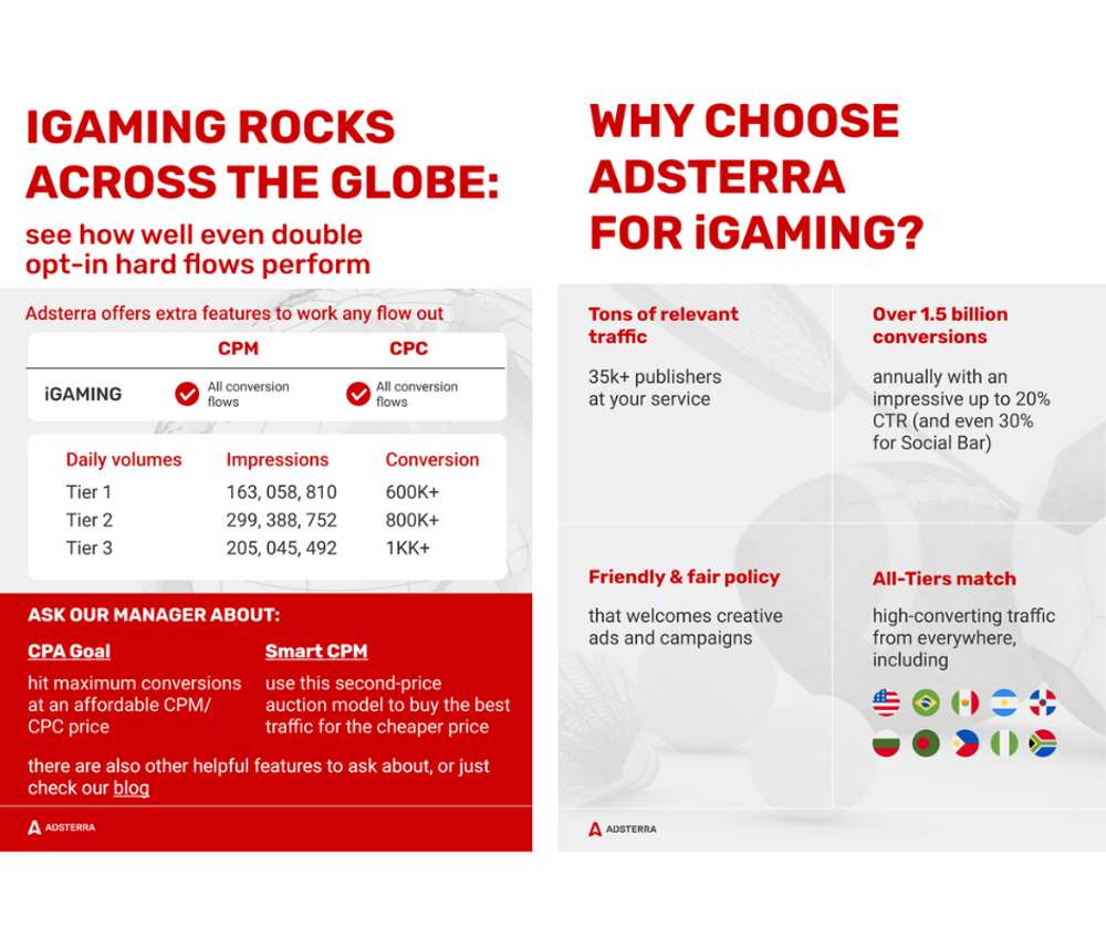 Adsterra is a world-known ad network with a Unique Partner Care approach and a decade-long presence in digital advertising. It serves over 35 billion ad impressions monthly, achieving 1.6 billion conversions annually.