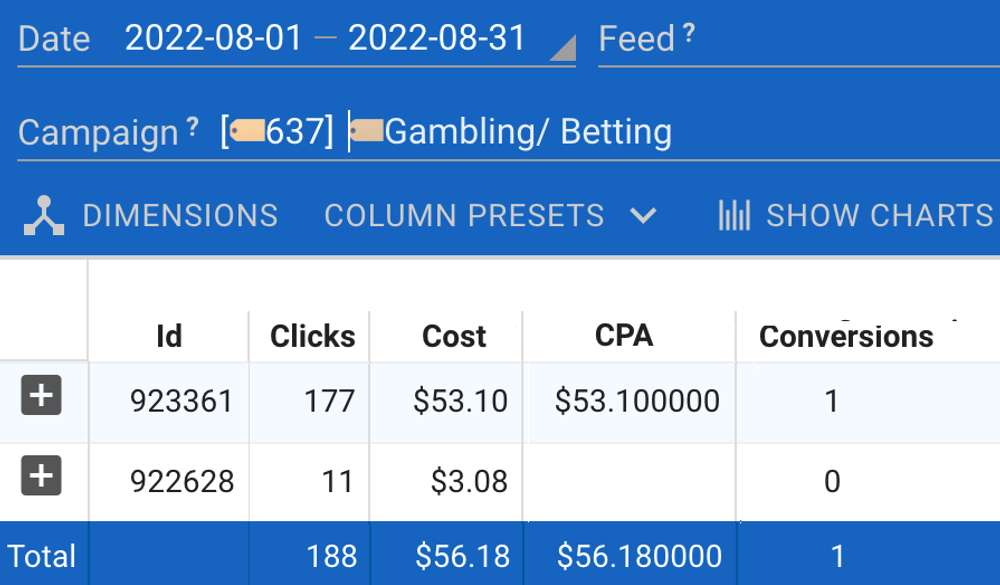 Together we started doing tests with various verticals. At first, the affiliate tested Gambling, but it didn't scale well, and also did not perform.
