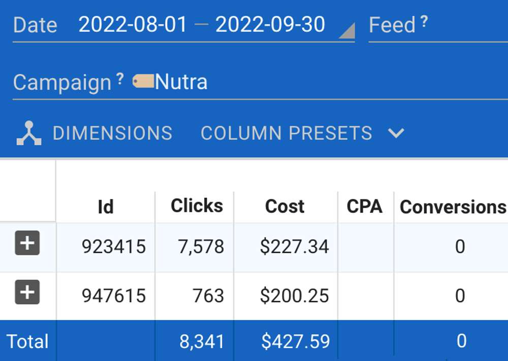 Next we decided to try the Nutra vertical. However, we faced failure there as well. The Master Affiliate tested several offers, but both turned out to be unsuccessful.